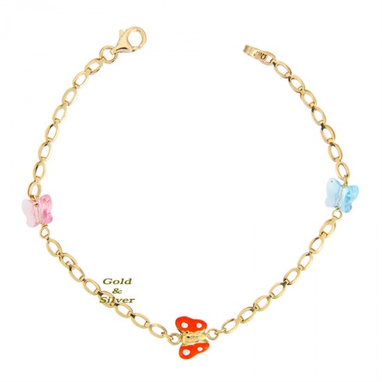 Βραχιόλι Πεταλούδα Χρυσό Κ9 Με Σμάλτο (BR00101)
